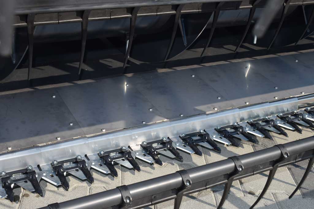 - Низкий профиль жатки Доминони обеспечивает подбор культуры даже в тяжелых условиях.